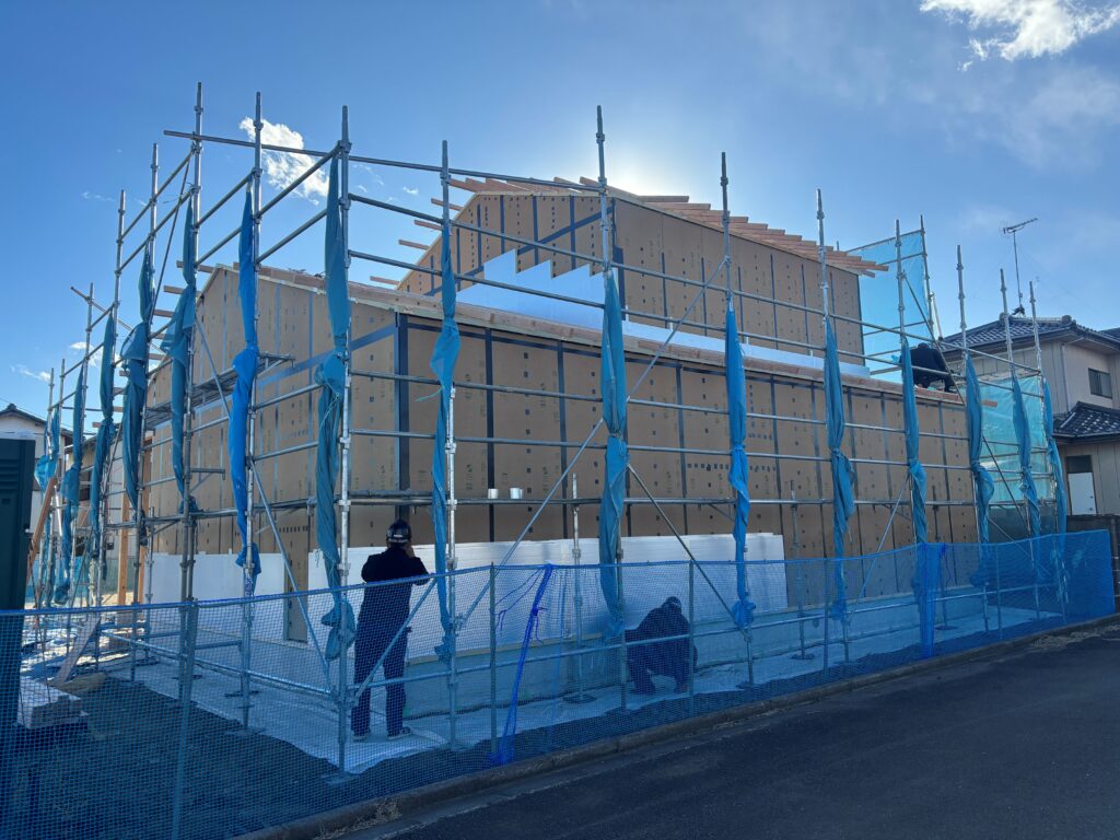 ※写真は新築上棟後、パネル気密工事後の外断熱工事を開始した時の写真になります。
